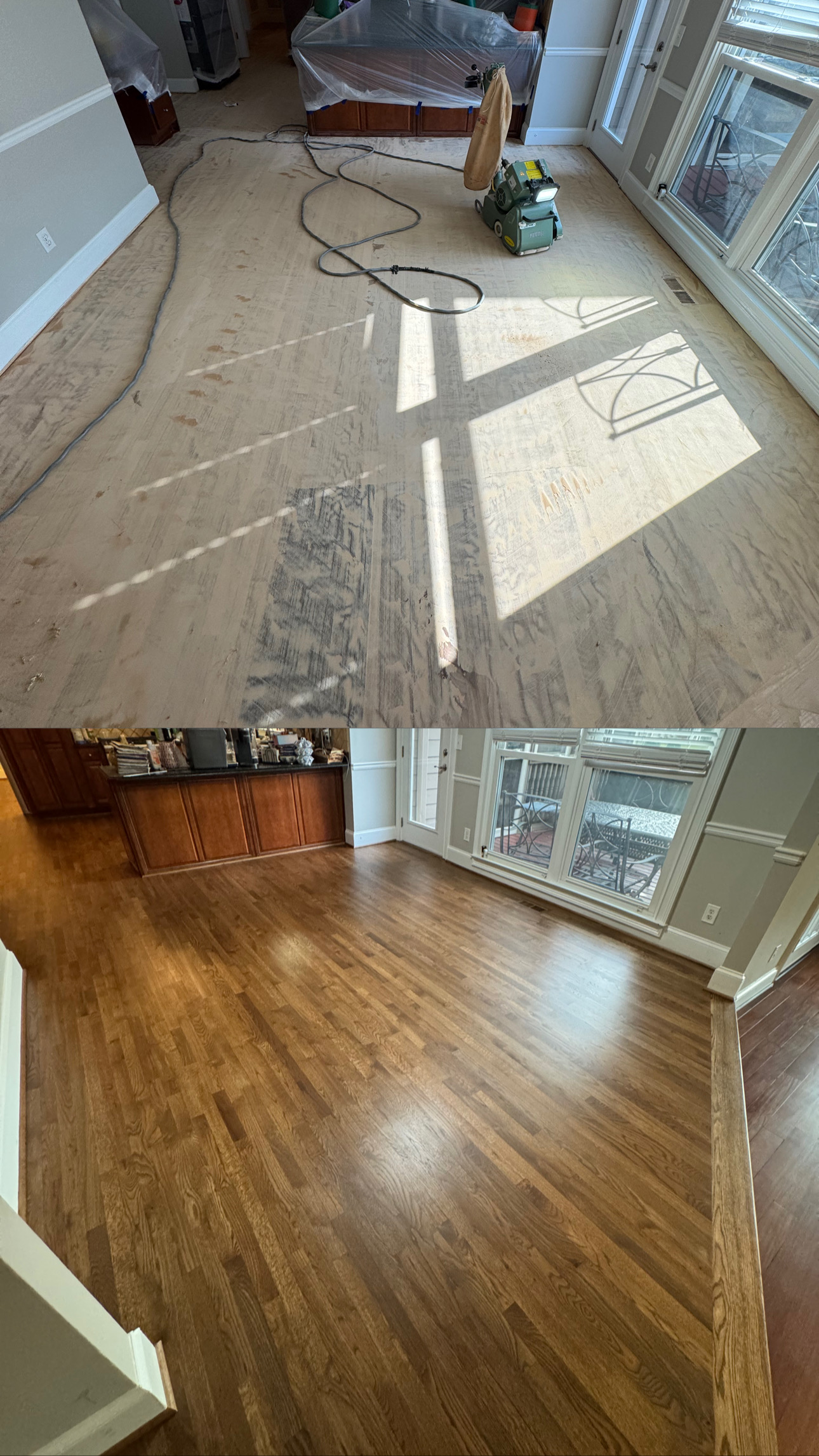 The refinishing process generally takes between 3 to 5 days, depending on the floor size and condition.