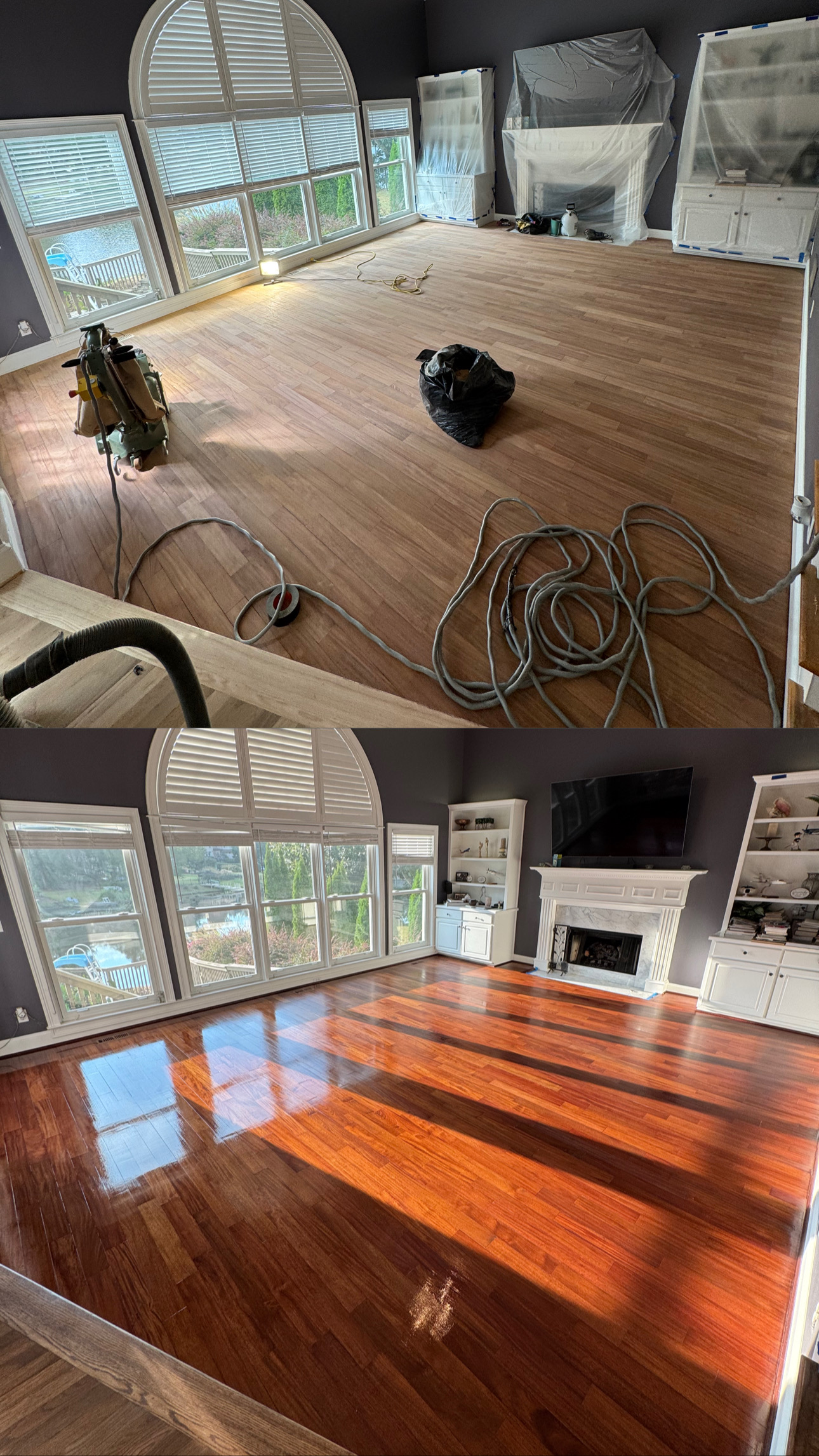 A semi-gloss finish delivers a brighter, more reflective appearance that enhances the grain and color of your hardwood floors. It provides a sleek, upscale look and is easier to clean than lower-sheen finishes. While it shows more light reflection and detail, it’s a great option for formal areas, low-traffic spaces, or homeowners who want a crisp, high-end shine.