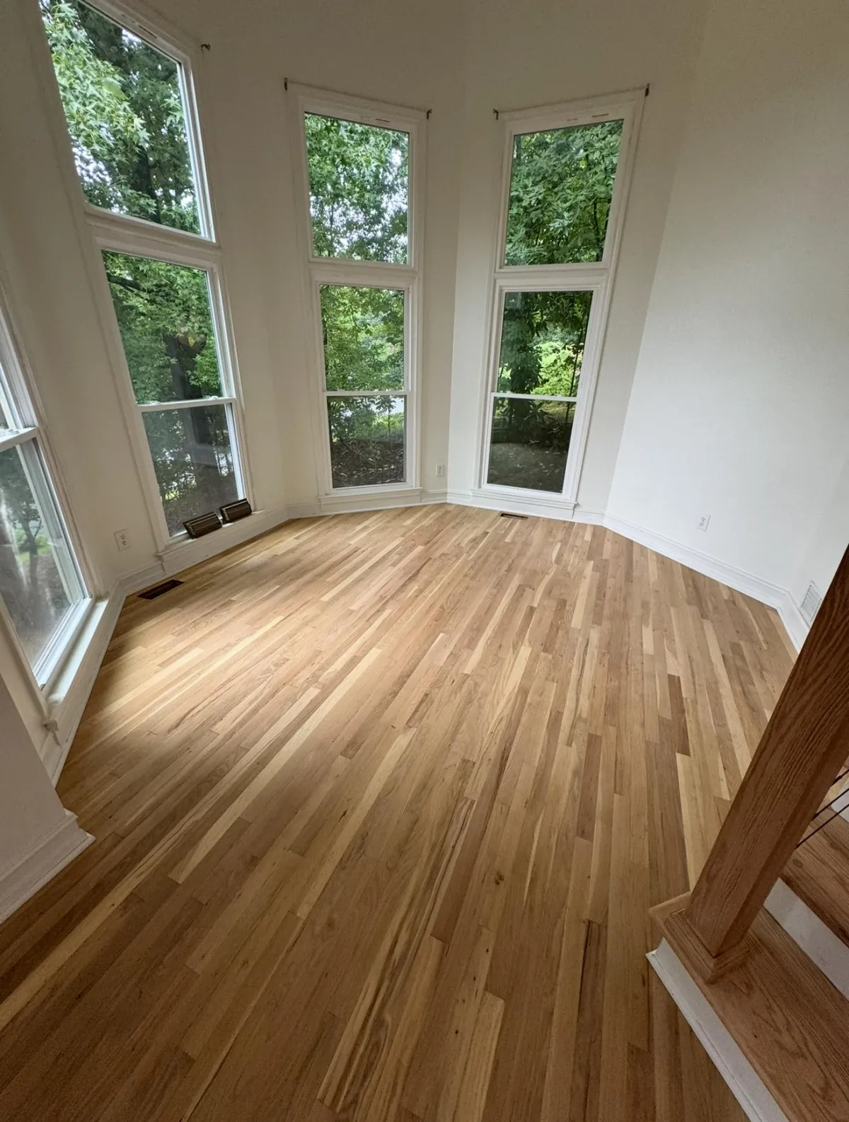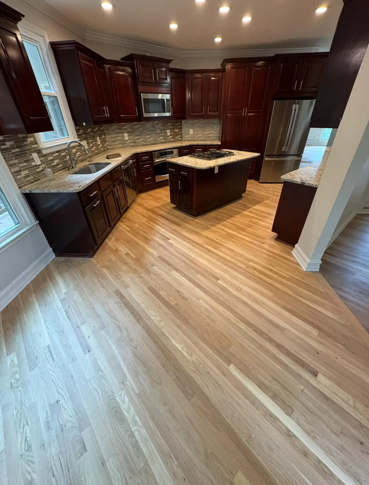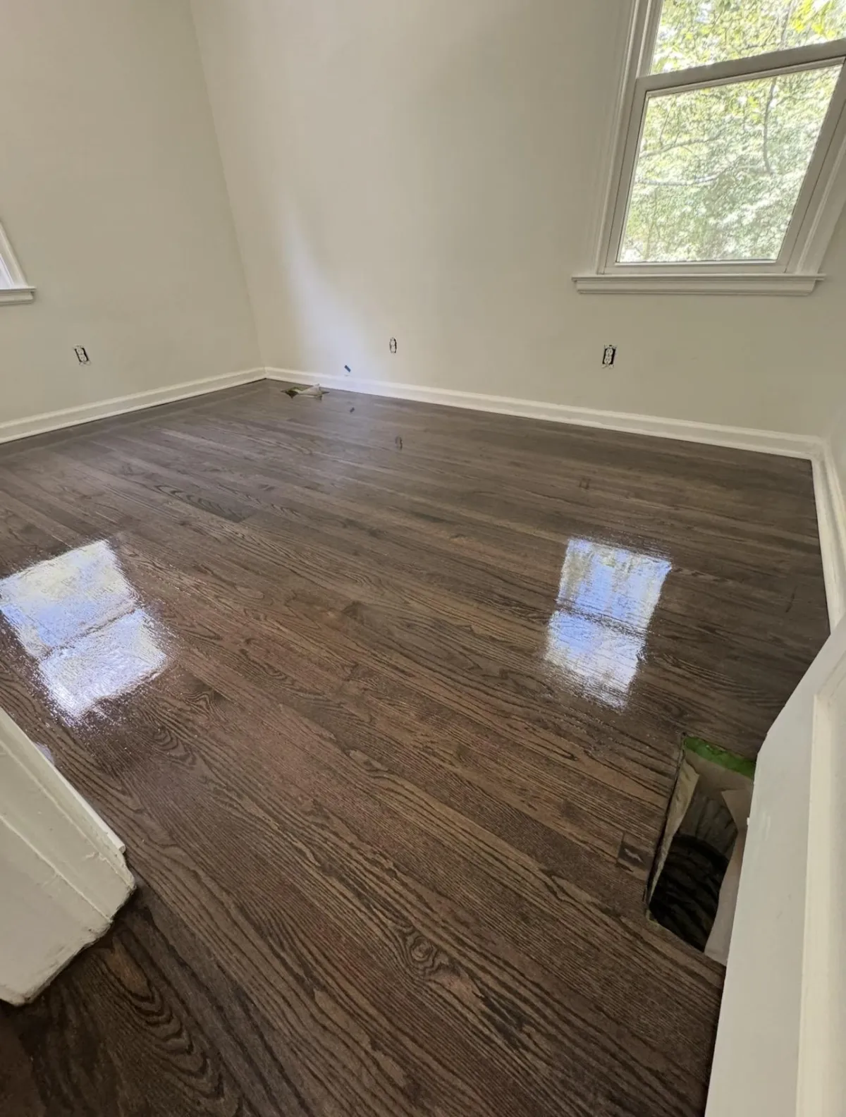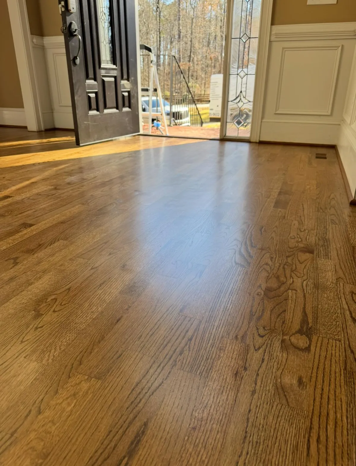 The refinishing process generally takes between 3 to 5 days, depending on the floor size and condition.