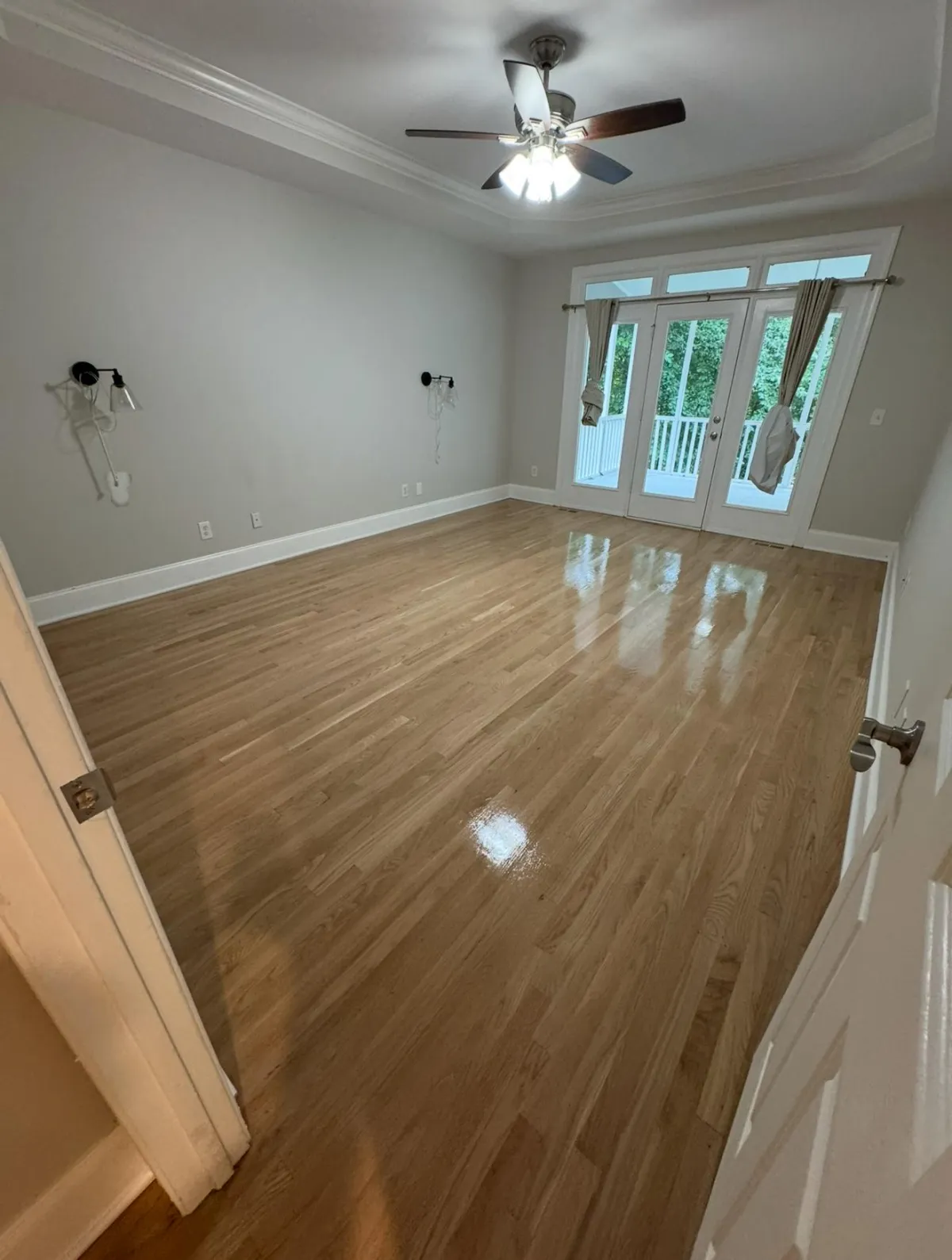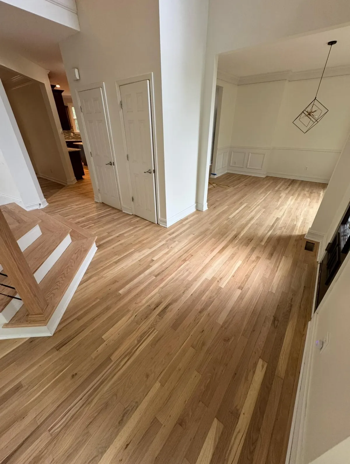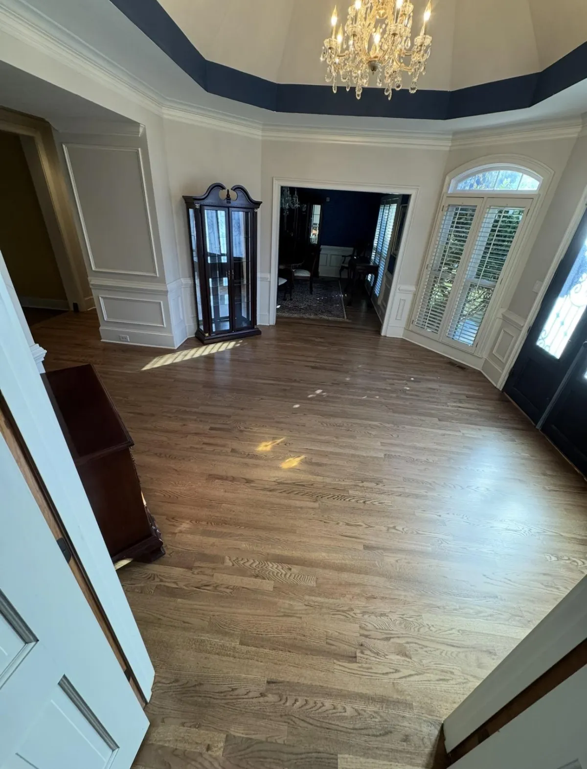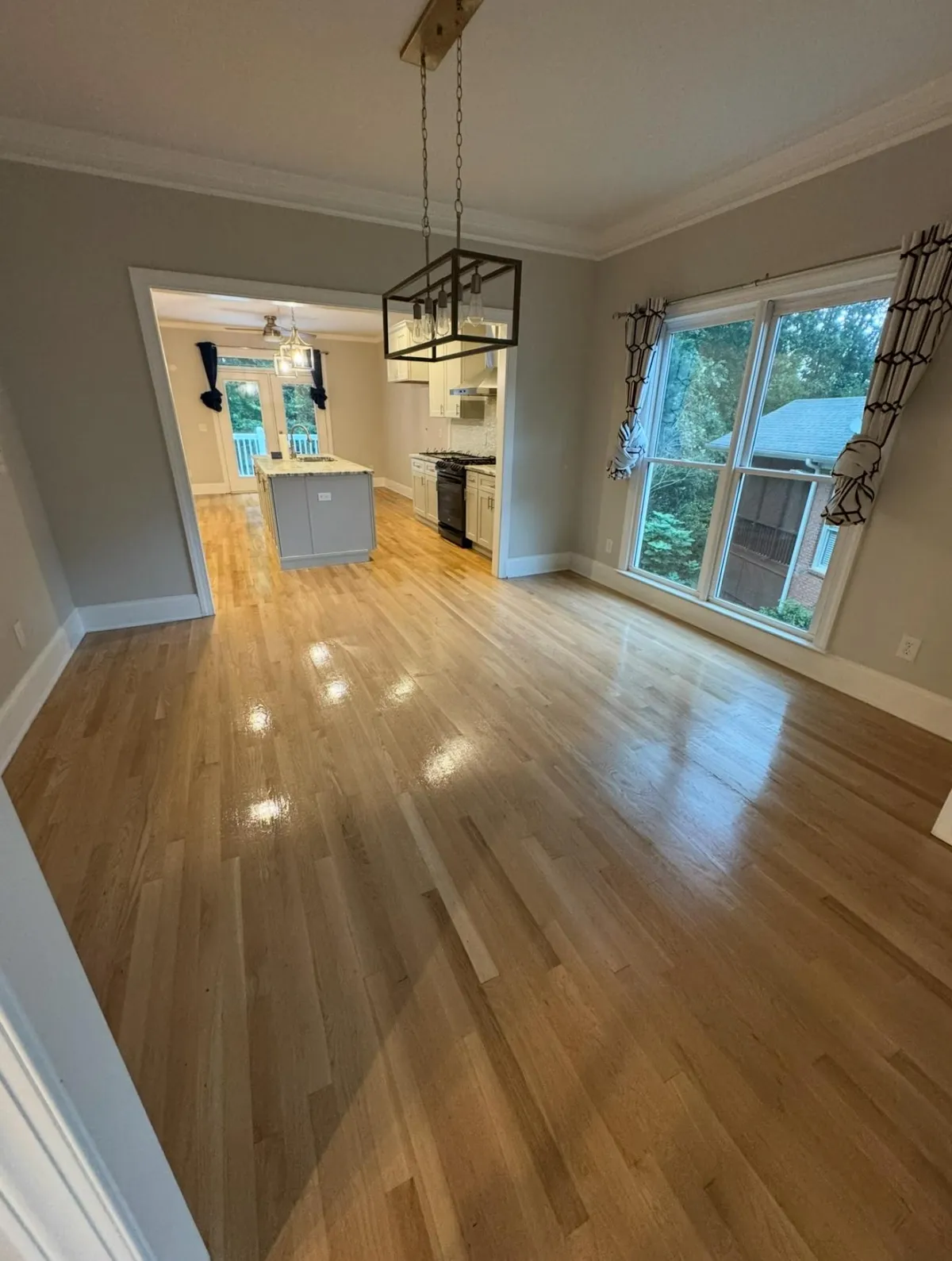 The refinishing process generally takes between 3 to 5 days, depending on the floor size and condition.