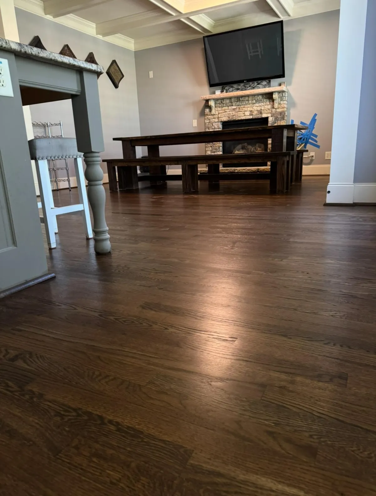 You can walk on your floors with socks after 24 hours, though we recommend waiting at least 48 hours before moving furniture back in and a full 7 days before laying rugs to allow the finish to cure fully.