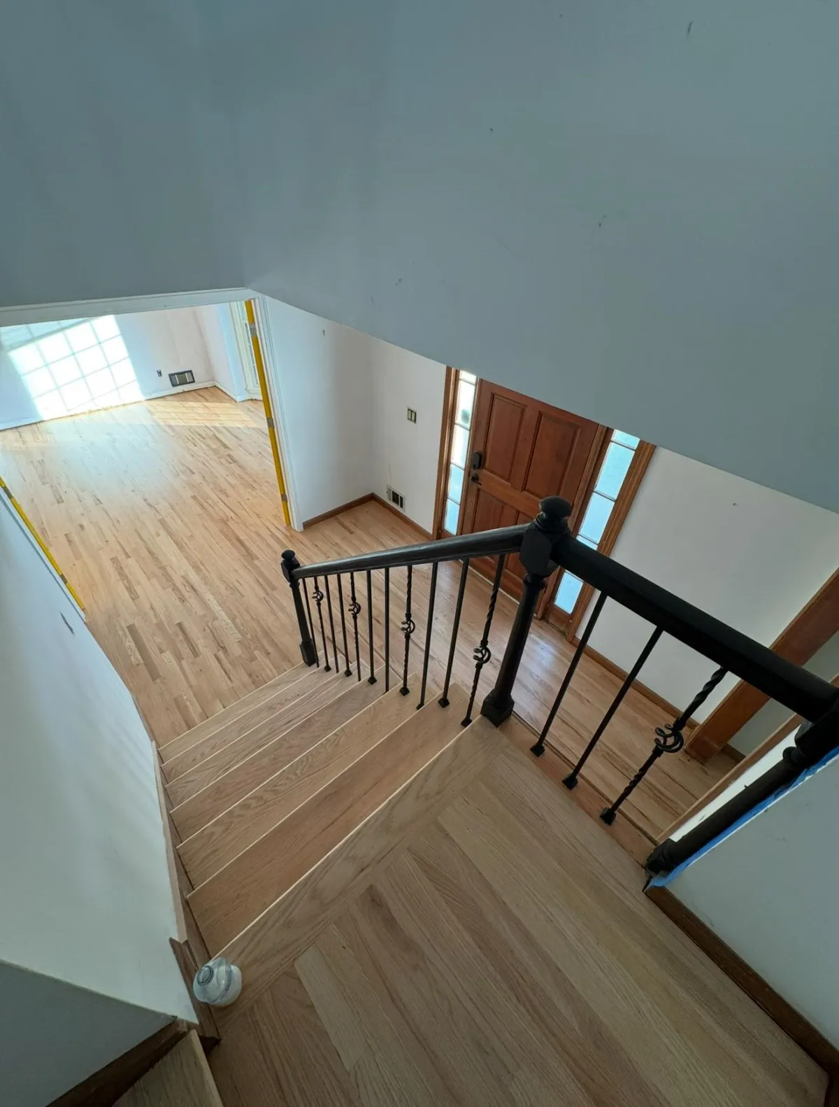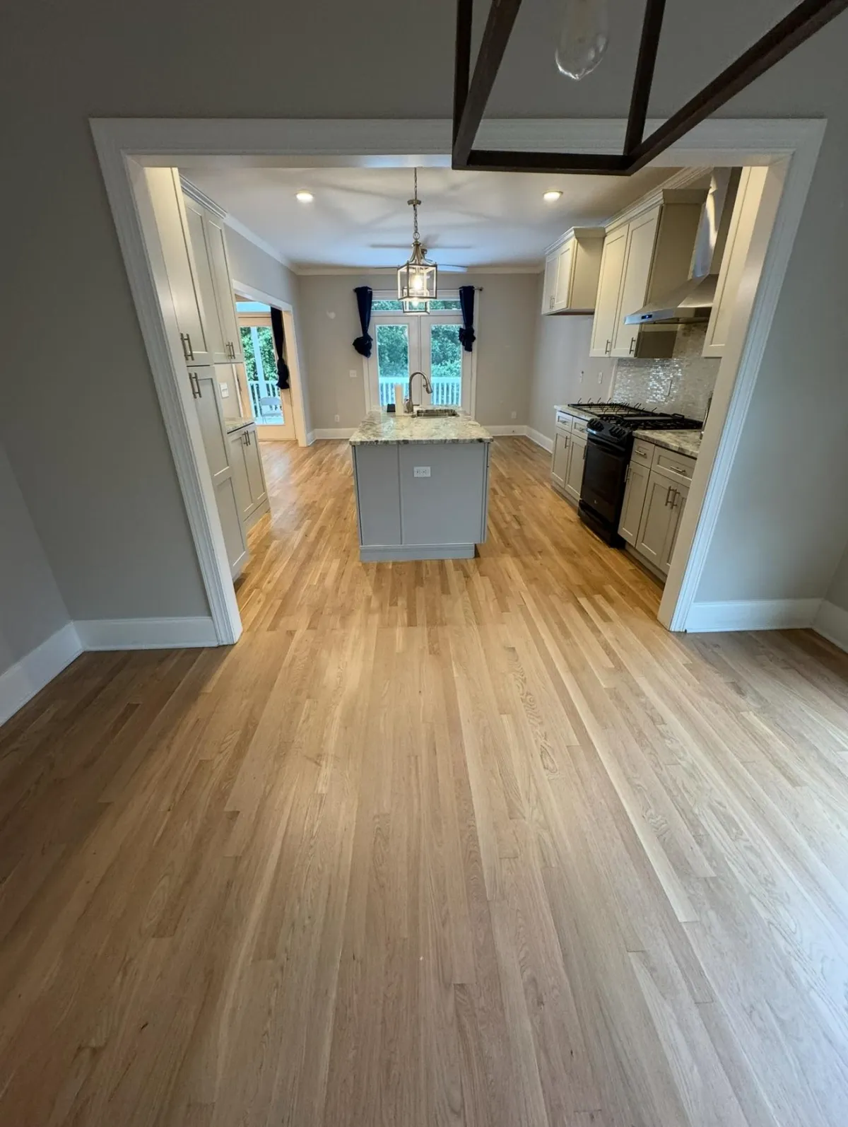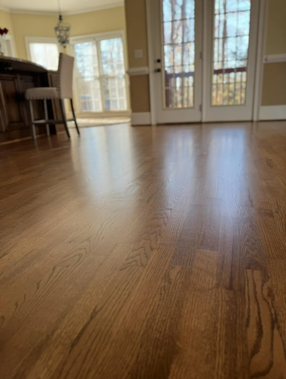 We recommend a gentle cleaning routine using products specifically designed for hardwood floors. Avoid harsh chemicals and excessive water. We also advise periodic maintenance coats every 3-5 years to preserve the floor's finish.